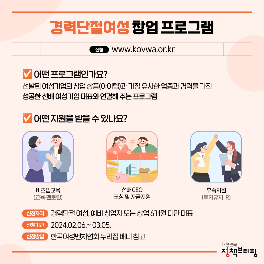 [공지] 2024 경력단절 여성 창업케어 프로그램 참여자 모집 (~3/5까지) : 한국여성벤처협회