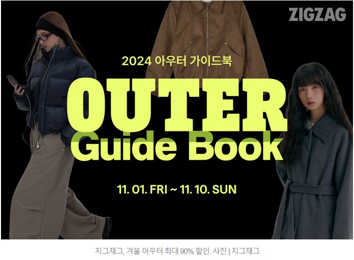 스타일 커머스 플랫폼 지그재그는 이 추운 겨울을 따뜻하게 맞이할 수 있도록 ‘아우터 가이드북’ 기획전을 진행하며, 최대 90% 할인 혜택을 제공합니다.